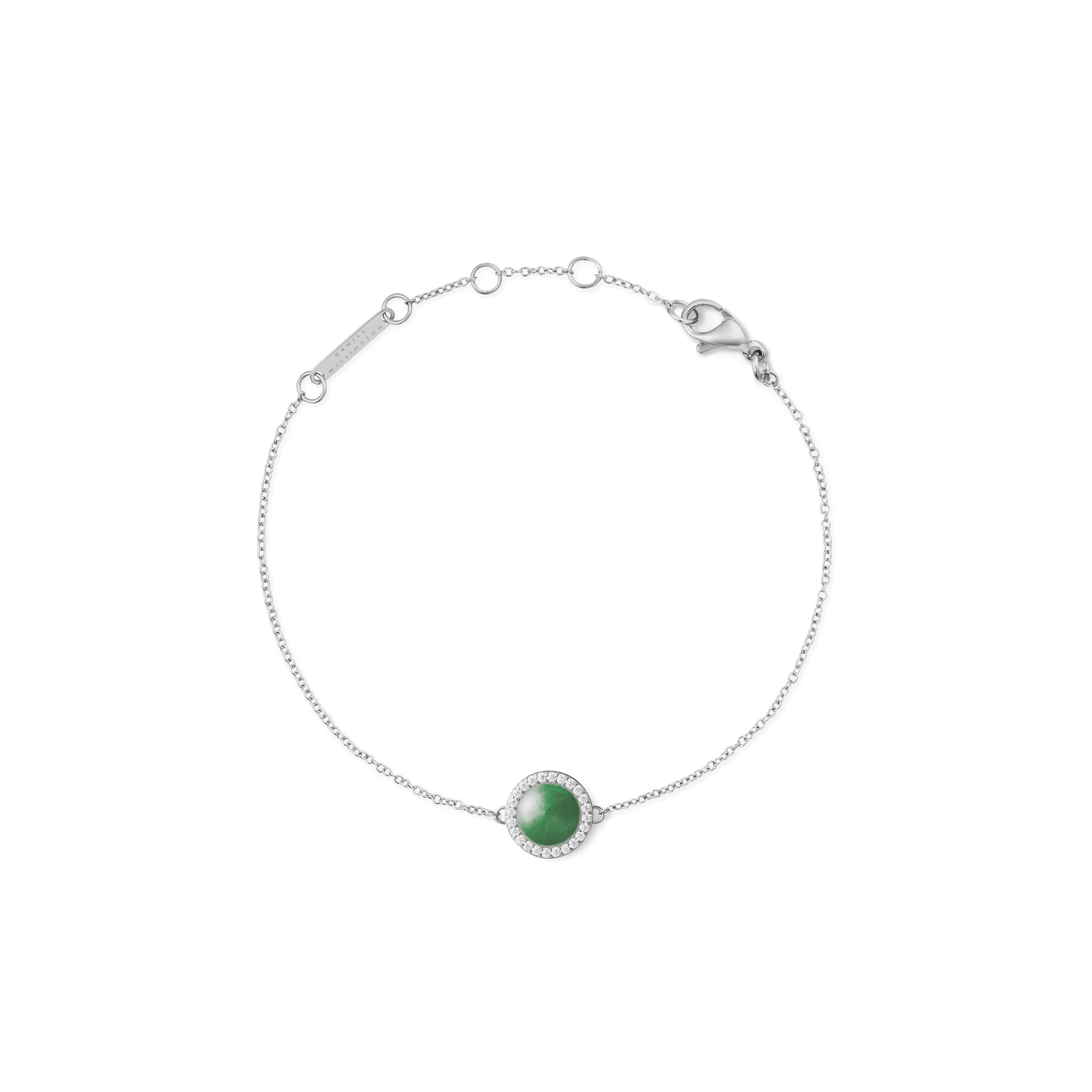 A thin row of white CZ crystals highlights the semi-precious stone in the Audrey bracelet to make it stand out even further. The whole is translated into a domed shaped charm bracelet that elevates your look to timelessly elegant. The bracelet is secured with a lobster clasp and allows for adjustable sizing. Semi-precious stones are a product of nature, and as such, variations in color, pattern, texture, and veining are inherent, as each stone is unique.
