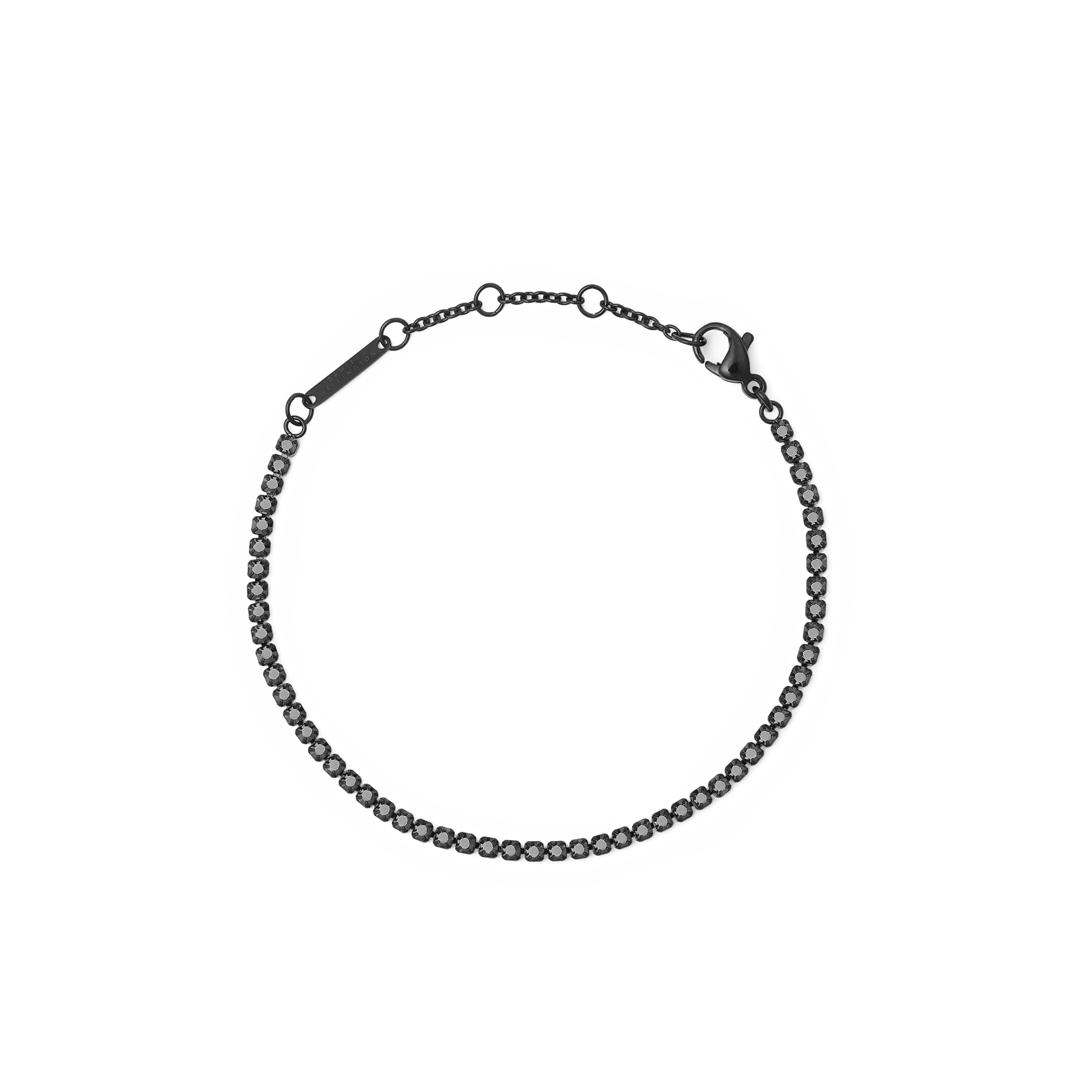 Our Classic Tennis Bracelet is always at the top of its game, but this black crystal version is about to put points on the board. With sleek black steel and shimmering dark crystals, this bracelet is comfortable and chic, effortlessly taking you from morning meetings to late-night cocktail hours. To achieve greater durability, each black crystal is individually set and tightly secured. The chain itself is crafted from high-quality 316L stainless steel and features sizing rings to always fit you perfectly. The Black Crystal Tennis Bracelet is also a great team player, so pair it with your favorite Daniel Wellington watch or bracelets.