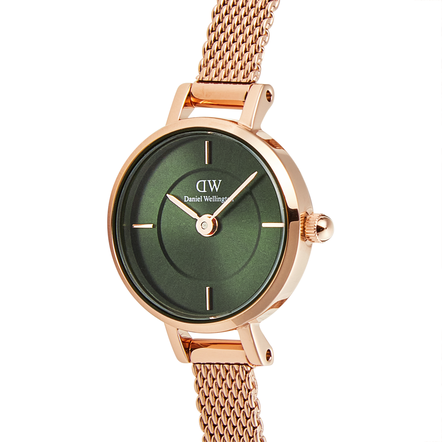 Meet the Petite Mini Emerald Melrose: an extension of our Petite watch collection—but shrunk down to irresistibly chic proportions. Taking design cues from our Quadro Mini watches, the emerald sunray dial is framed by an inner circle ring, a detail that adds just a touch of extra elegance. The rose gold mesh strap is interchangeable, so you can effortlessly mix and match your style to the mood.