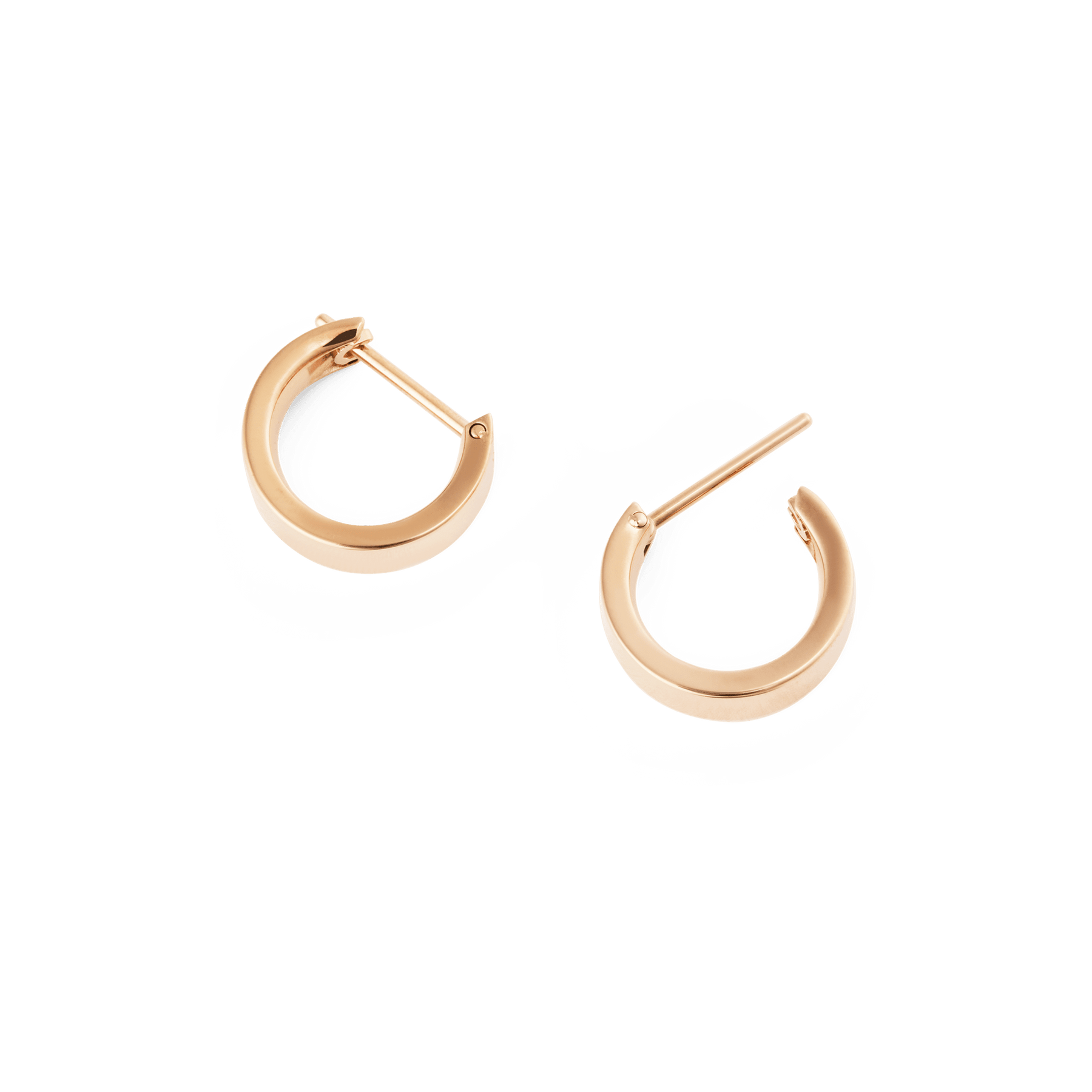 Made from 316L stainless steel with PVD plated rose gold, it offers lasting color and a reassuring weight without bulk. The 1.8 mm thickness and secure latch-back closure provide comfort and confidence throughout the day. A discreet logo is hidden inside, keeping the design minimal and understated. As women's everyday earrings, these small rose gold earrings wear beautifully alone or stacked, and pair seamlessly with other pieces from our Line collection.