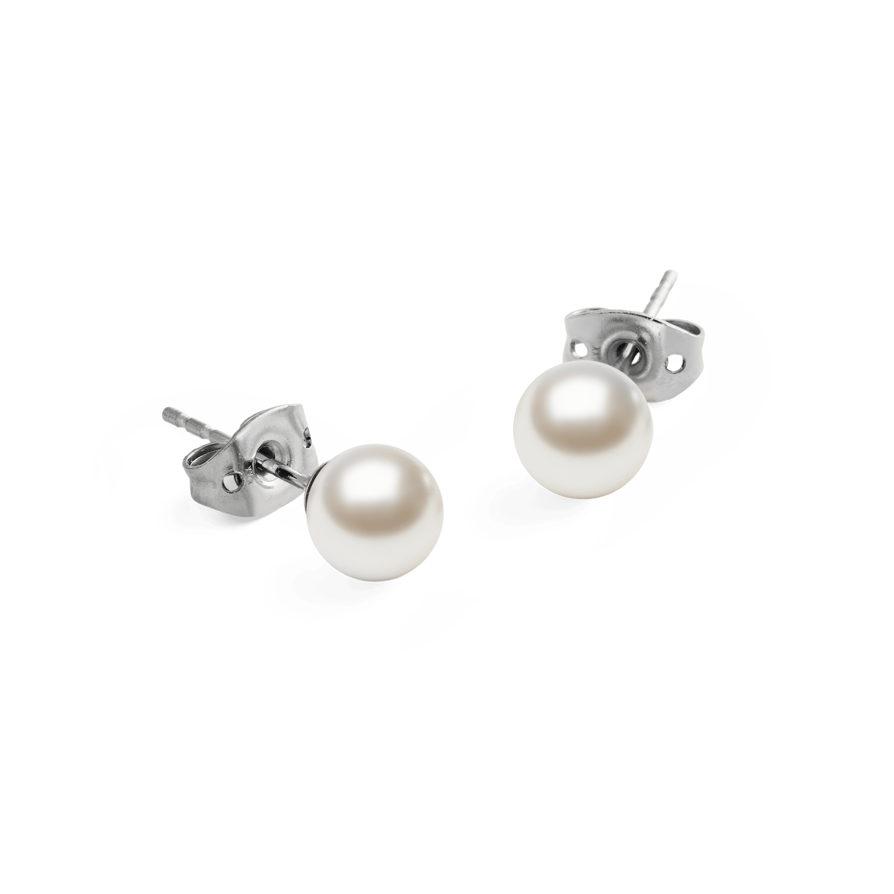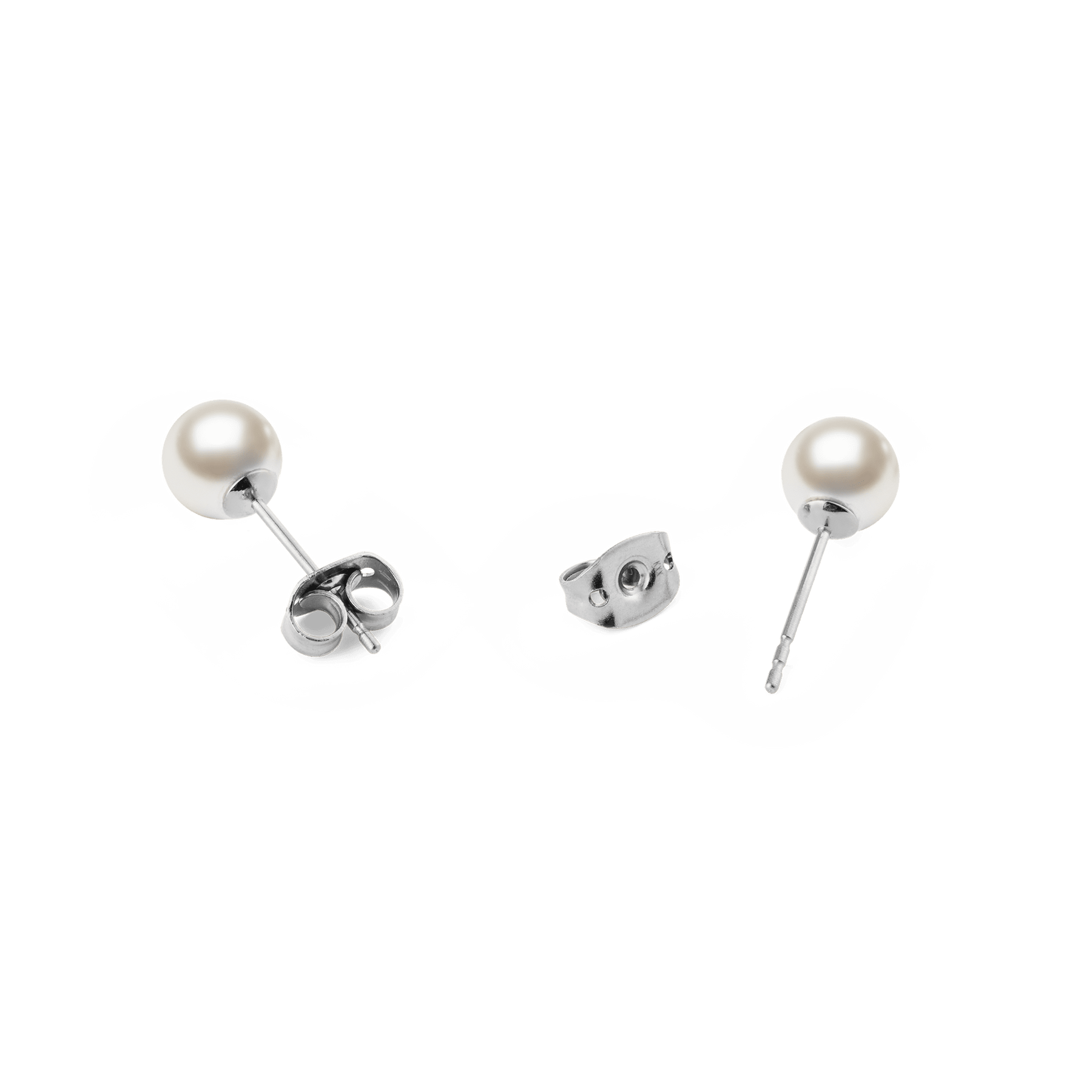 Our Pearl Stud Earring in Silver brings timeless simplicity to everyday dressing. Each earring features a 6.0 mm white Swarovski glass pearl set in a refined silver-tone finish. Small silver stud earrings that feel quietly elegant and easy to wear from morning to evening.