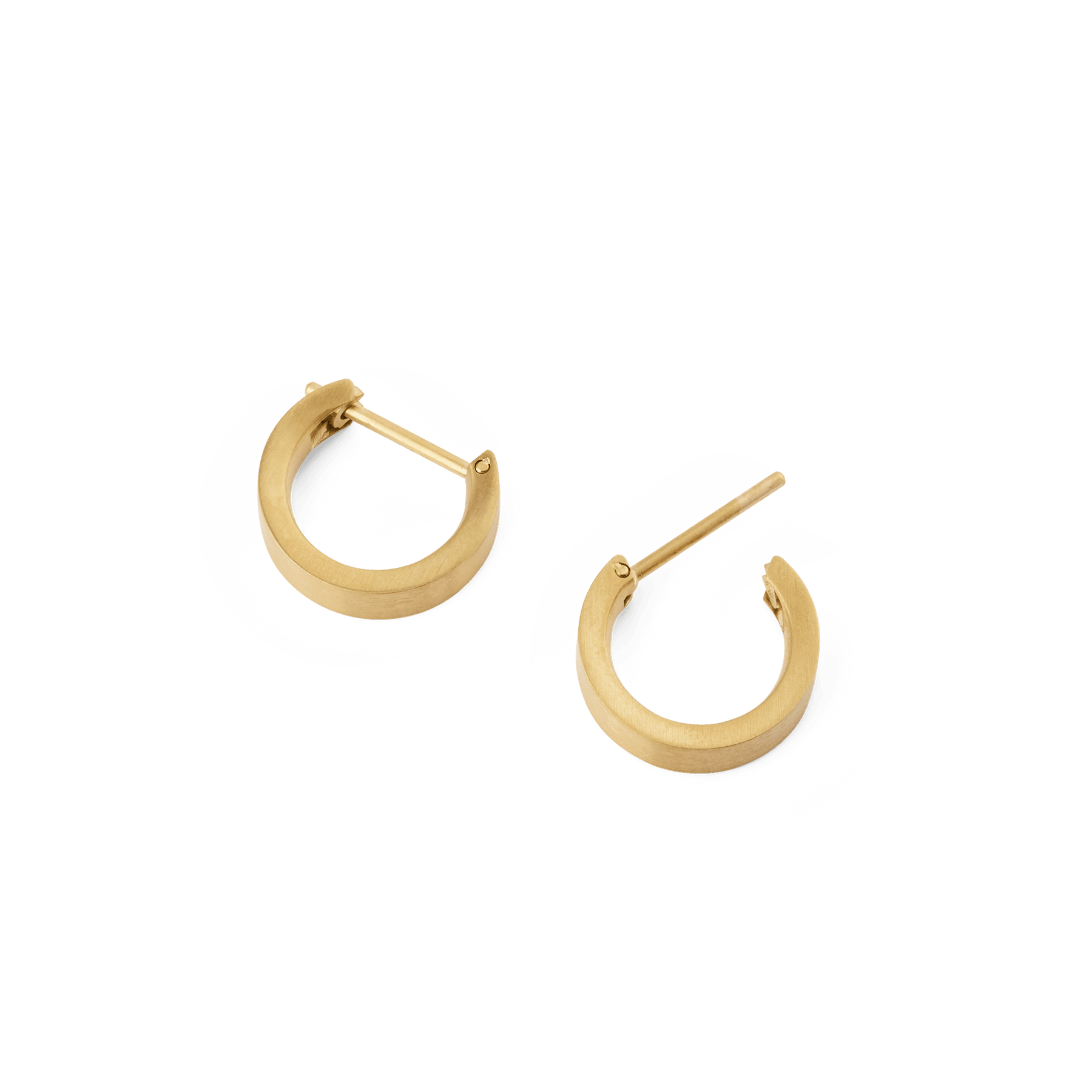 The Line Earrings in brushed gold are our tribute to understated elegance. Clean lines, refined edges, and a softly textured finish create a quiet statement. These small gold hoop earrings measure 3.5 mm in width with a compact 12.8 mm outer diameter, offering a close, comfortable fit that works from casual to formal. Designed for anyone who appreciates simplicity, they suit both women's gold hoop earrings and gold earrings for men as effortless everyday gold earrings.
