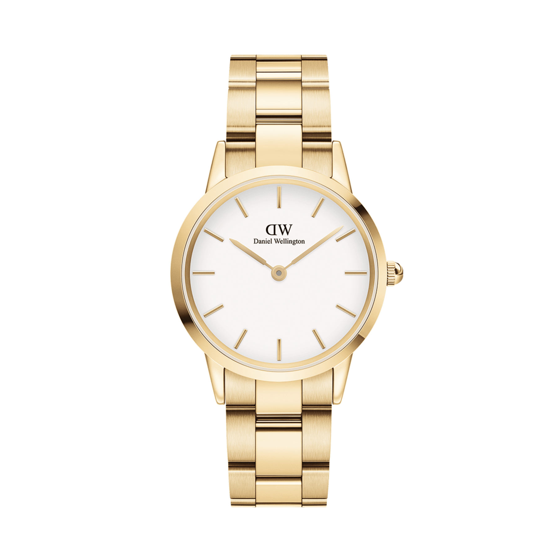 The Iconic Link White may be a gold watch for women, but its charisma is what truly shines through. This model grabs your attention with its gold link bracelet and sustains it with its design-fueled dial. The white watch face features our signature twelve index dial, which puts a modern spin on this classic design, and sets the Iconic White Link apart from other gold watches for women. Needless to say, gold is highly versatile, so wear it every day for a look that stands out. The ultimate gold watch for women. Gold link bracelet paired with a white watch face. Shop gold watches for women online at Daniel Wellington.