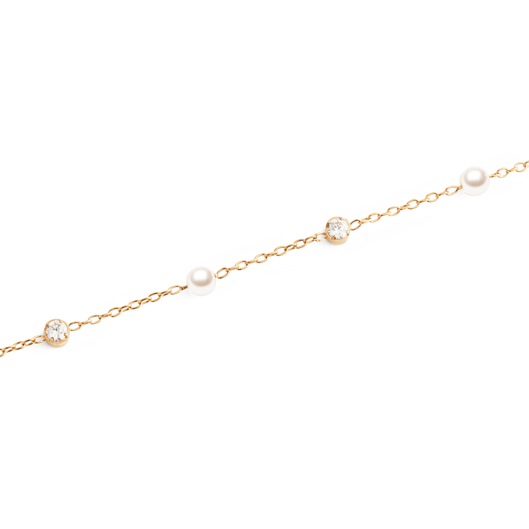 We craft this bracelet from 316L stainless steel with a PVD plated rose gold finish to ensure lasting color and shine. Each pearl and stone is set with subtle, near-invisible details that let the materials take the lead. Our focus on ultra-thin profiles, precise settings, and careful polishing results in a refined finish that endures wear and time.