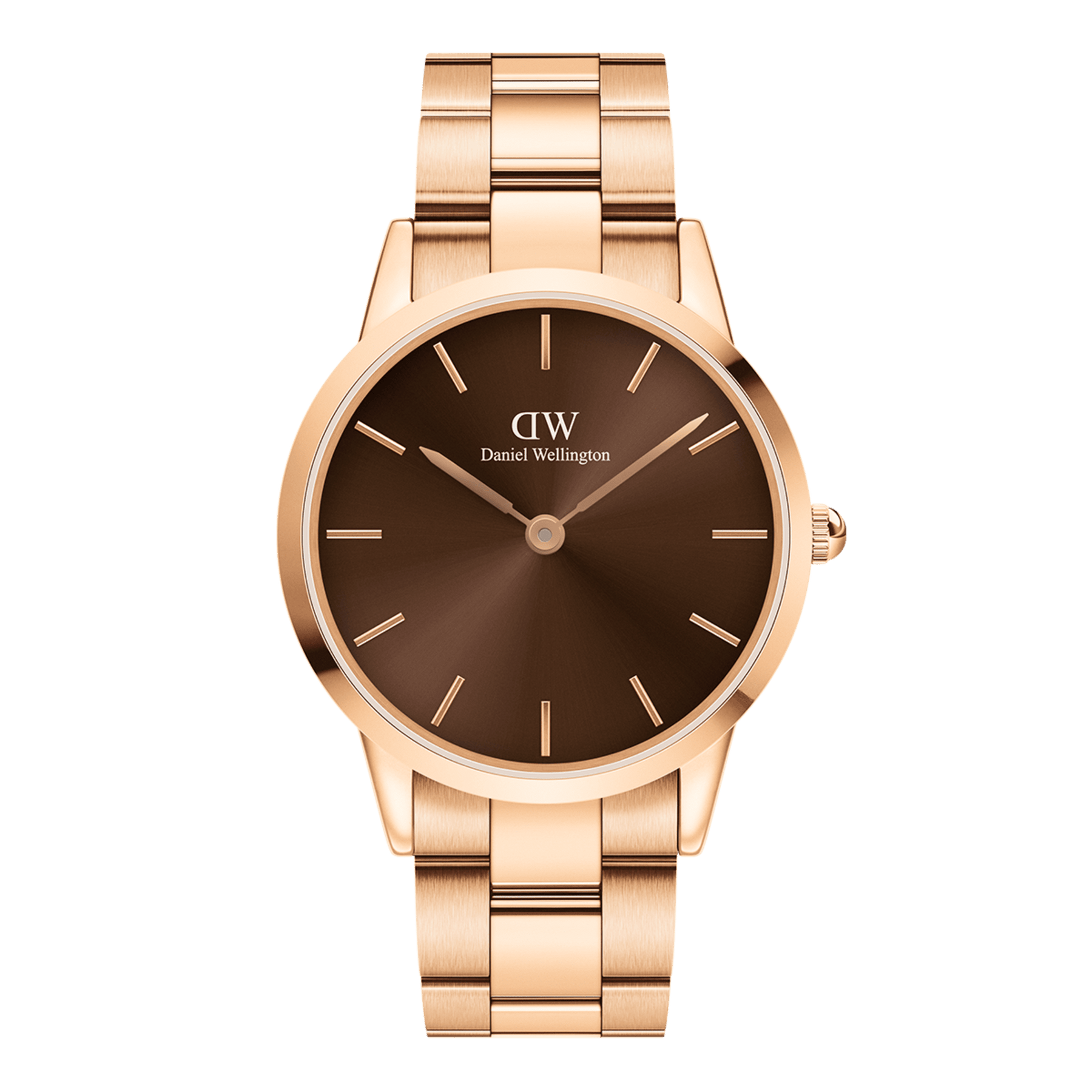 The Iconic Link Amber features a light brown dial with a sunray finish. A vibrant color associated with warmth, energy, and boldness. Crafted with polished stainless steel, available with a refined rose gold plating. An eye-catching timepiece that gives your look a unique touch.