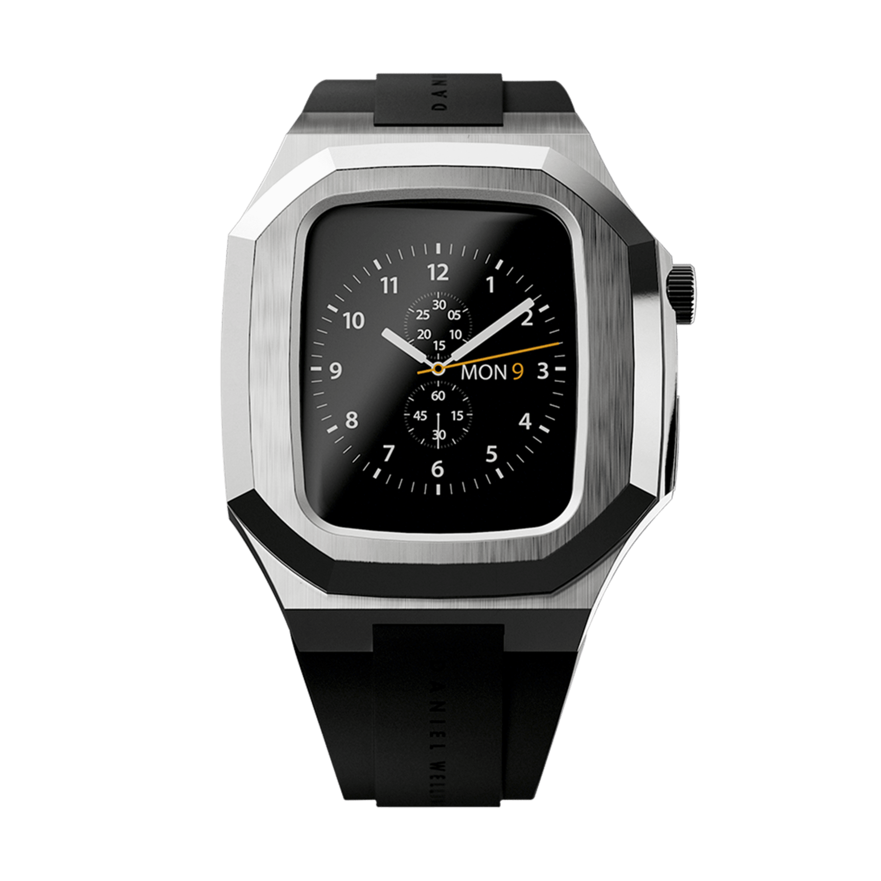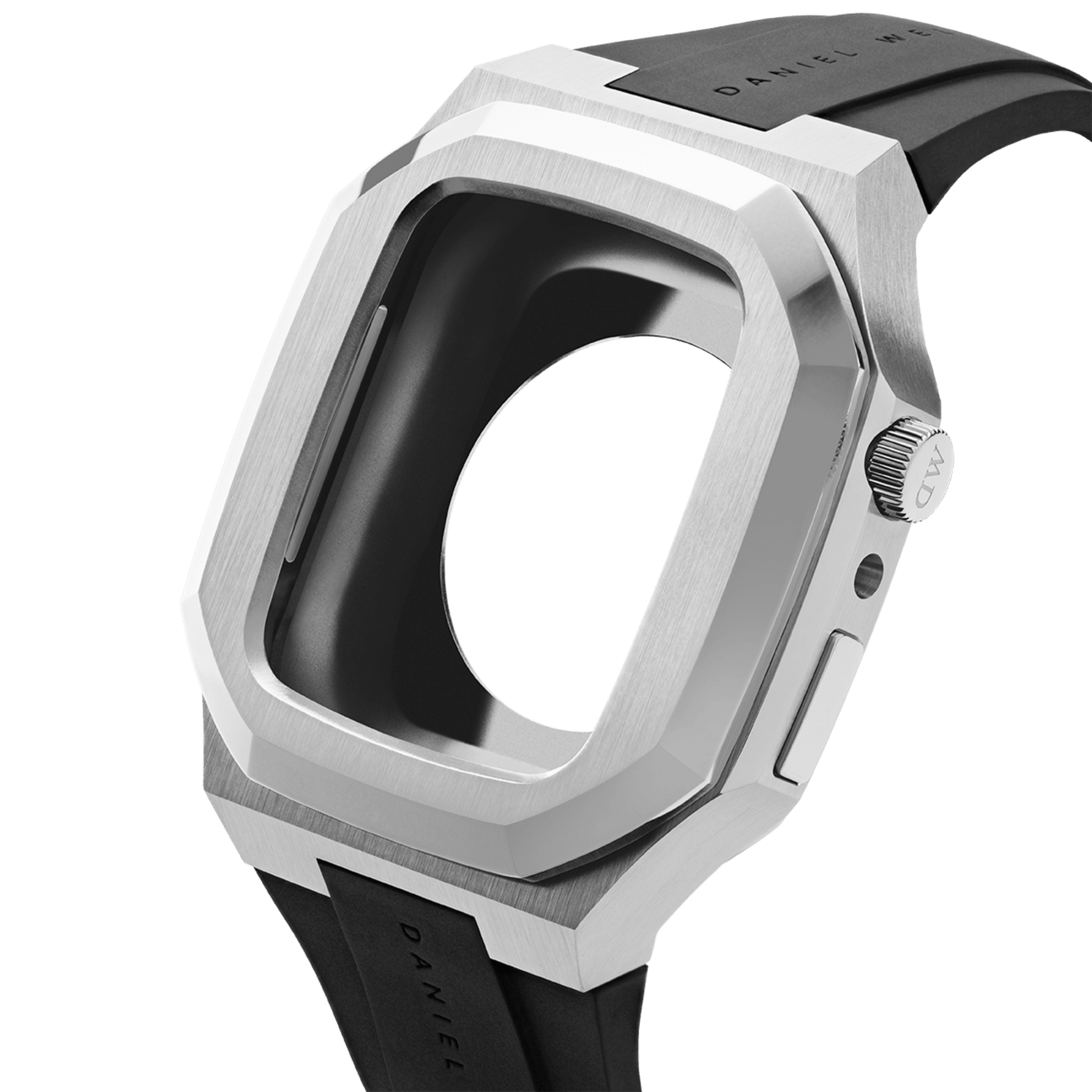 The DW Smartwatch Case is one of our most complex products to date. Crafted with stainless steel and available in silver and size 40mm. Featuring a seamless transition between the smartwatch, case and synthetic rubber (FKM) watch strap. An Apple Watch case compatible with Apple Watch series 6, 5, 4 and the Apple Watch SE. Enjoy the functionality of an Apple watch without compromising your style.
