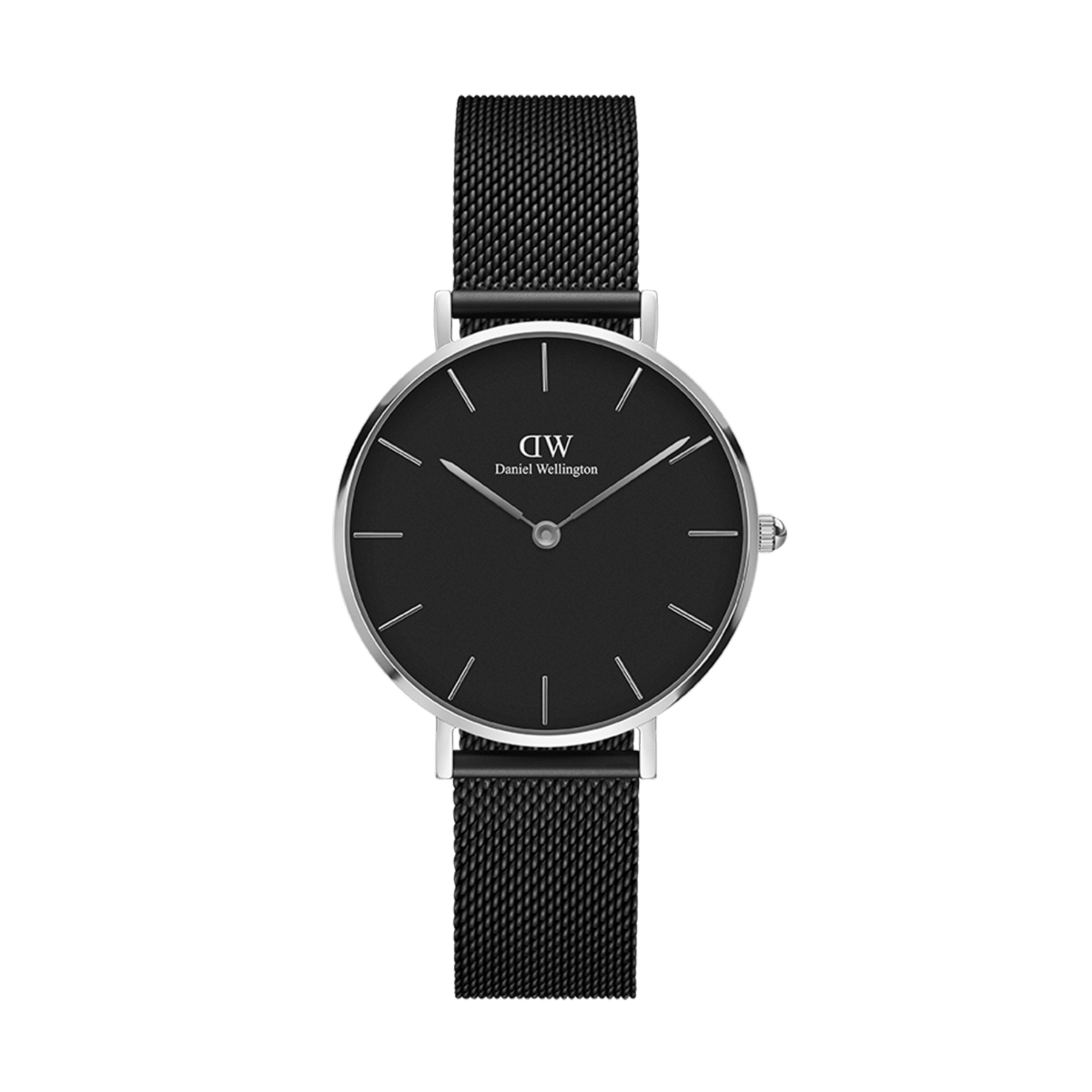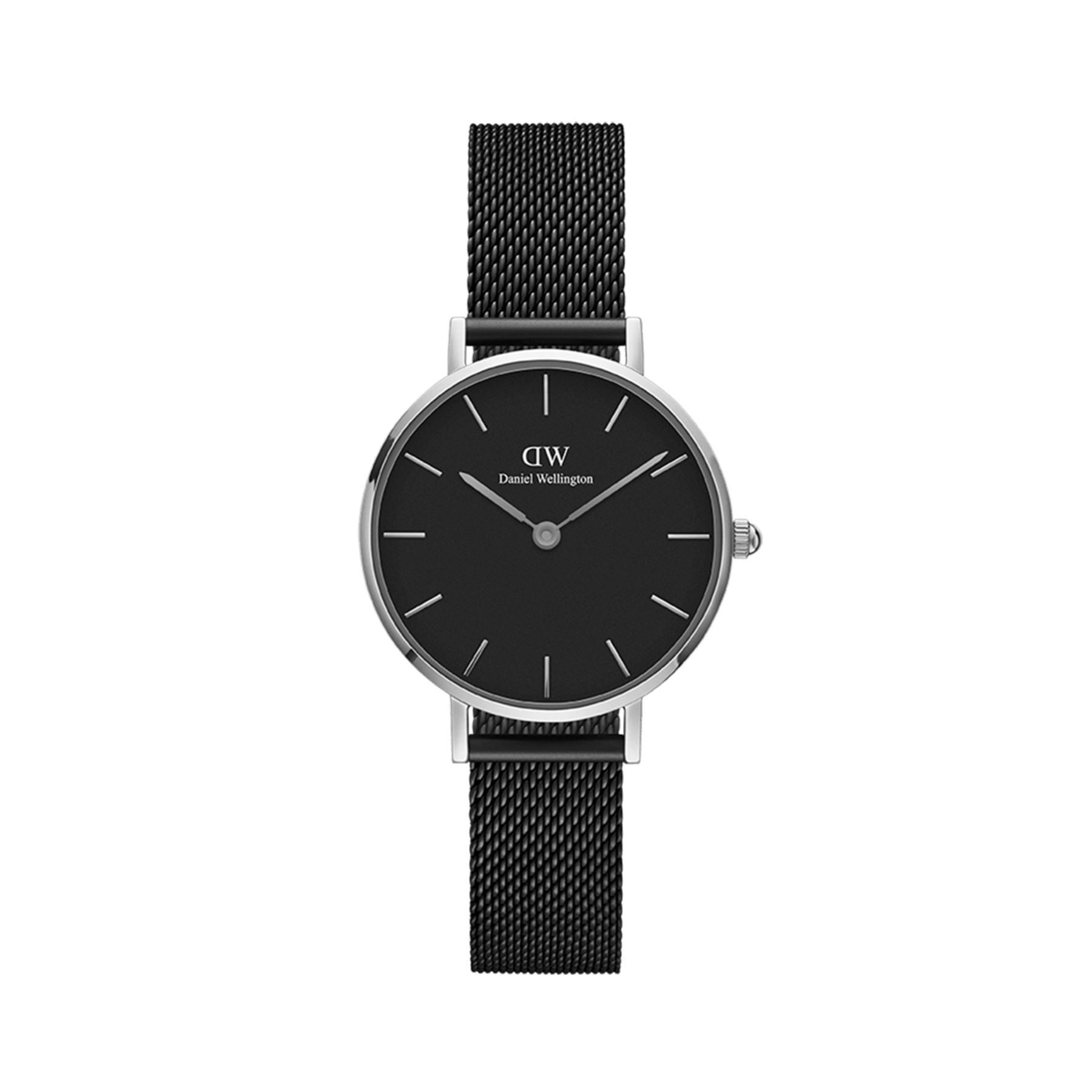 ELEGANT AND DISTINGUISHED. Enter the new season in timeless fashion with Petite Ashfield. This ultra-thin watch rests delicately on the arm and features a matte black mesh strap and a sophisticated black dial. Available with details in rose gold or silver.