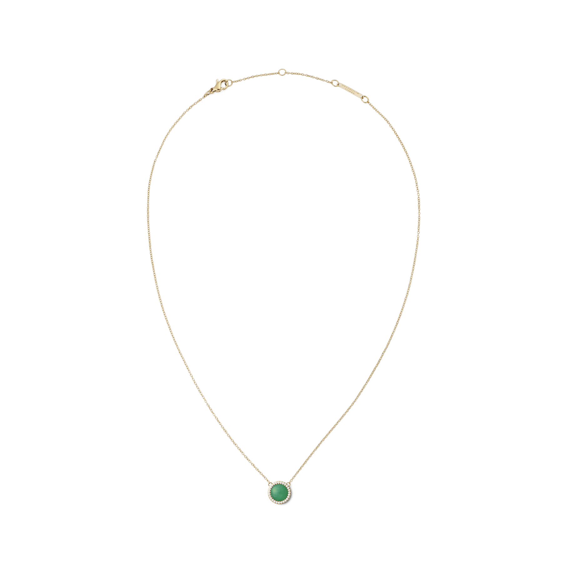 A thin row of white CZ crystals highlights the semi-precious stone in the Audrey necklace to make it stand out even further. The whole is translated into a domed shaped charm that elevates your look to timelessly elegant. The necklace is secured with a lobster clasp and allows for adjustable sizing. Semi-precious stones are a product of nature, and as such, variations in color, pattern, texture, and veining are inherent as each stone is unique.