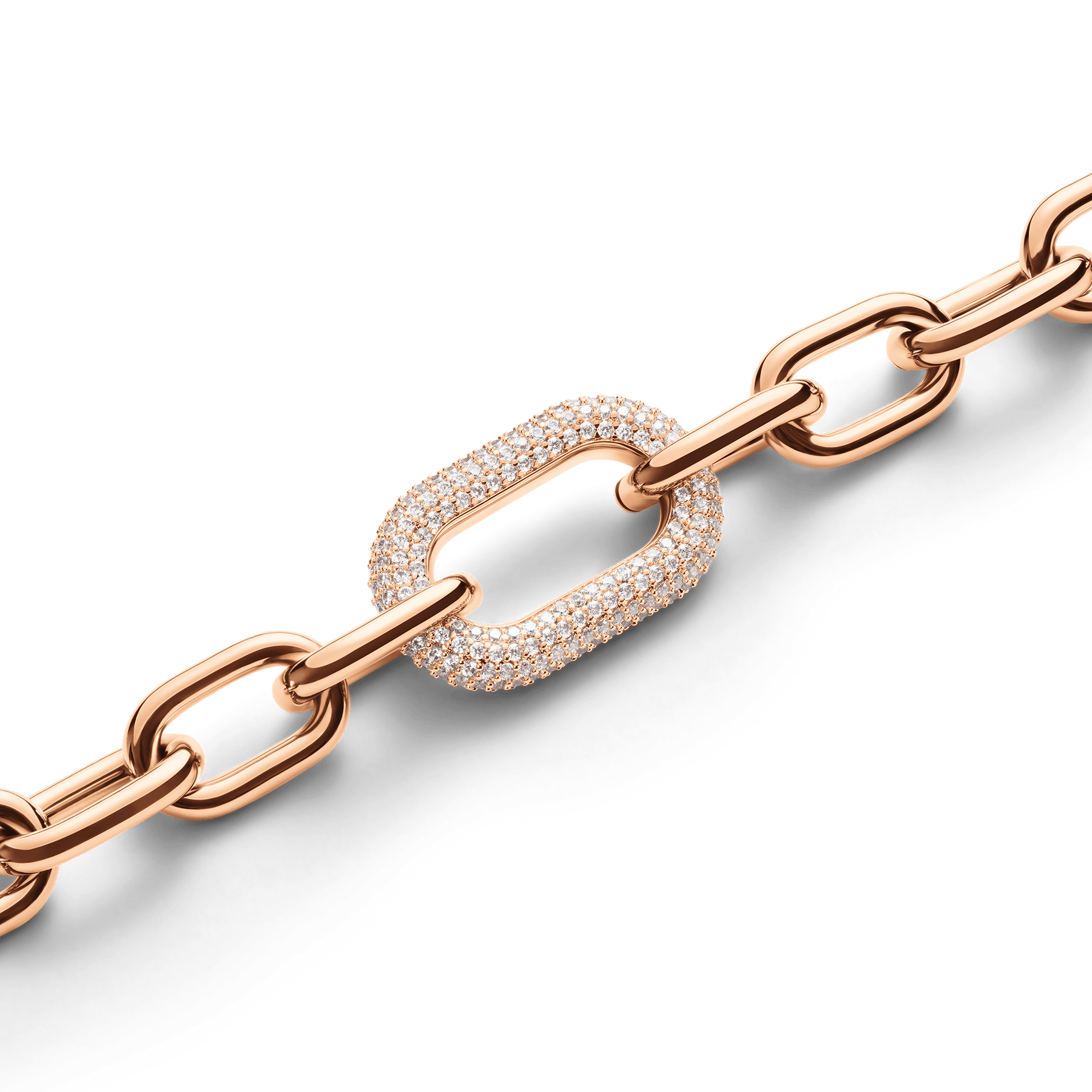 A mix of industrial elements and refined crystal details take this rose gold link necklace way beyond your basic chain. Wear it with the rest of the Crystal Link collection or alone as a statement piece—this chunky chain is a stunner either way.