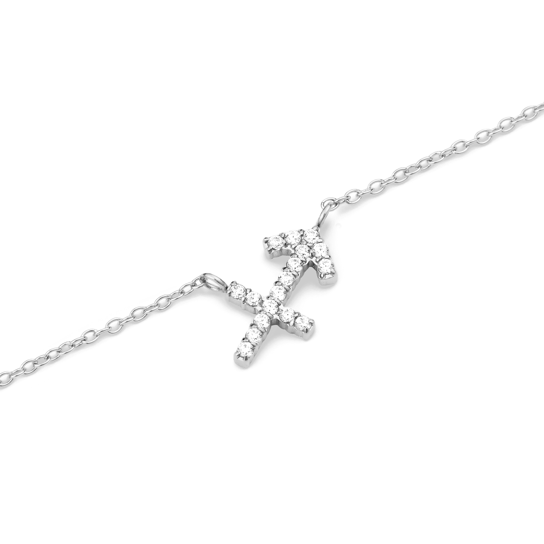 Take this as a sign from the stars: it’s time to add some celestial energy to your look. This silver necklace features a thin, elegant chain with a fixed crystal zodiac pendant. Every crystal on the pendant is hand-set using a claw setting technique, and the chain comes equipped with sizing rings for an adjustable length.