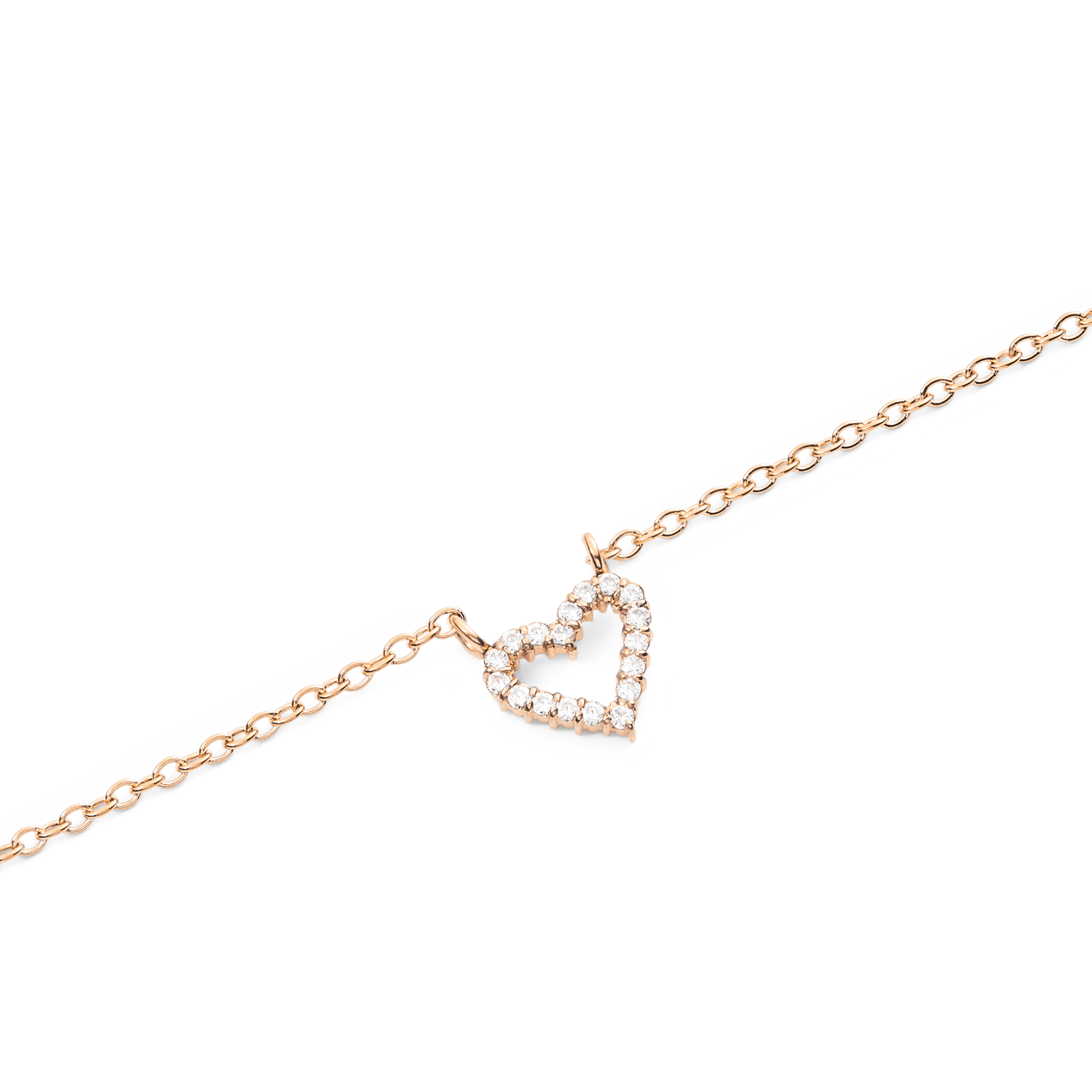 The Mirelle collection captures the elegance of minimalist design with delicate details that make a significant impact, crafted with 0.8mm White stones and set with meticulous precision for a sparkling yet subtle effect. The pieces in this Heart collection, including bracelets, necklaces, and earrings, have a refined 1.4mm thickness, offering quiet elegance perfect for everyday wear, available in Gold, Silver, and Rose Gold.