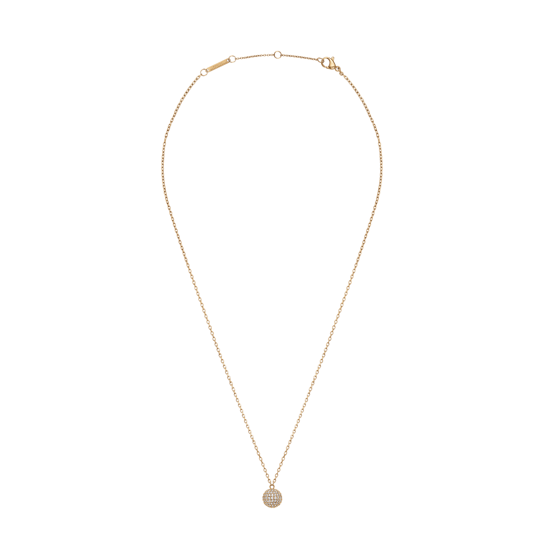 Closely arranged, carefully set crystals allow this gold pendant necklace to capture the light from all angles, creating a sparkling effect found across the entire Pavé collection. The pendant is fixed, so the necklace’s clasp and sizing rings won’t gather.