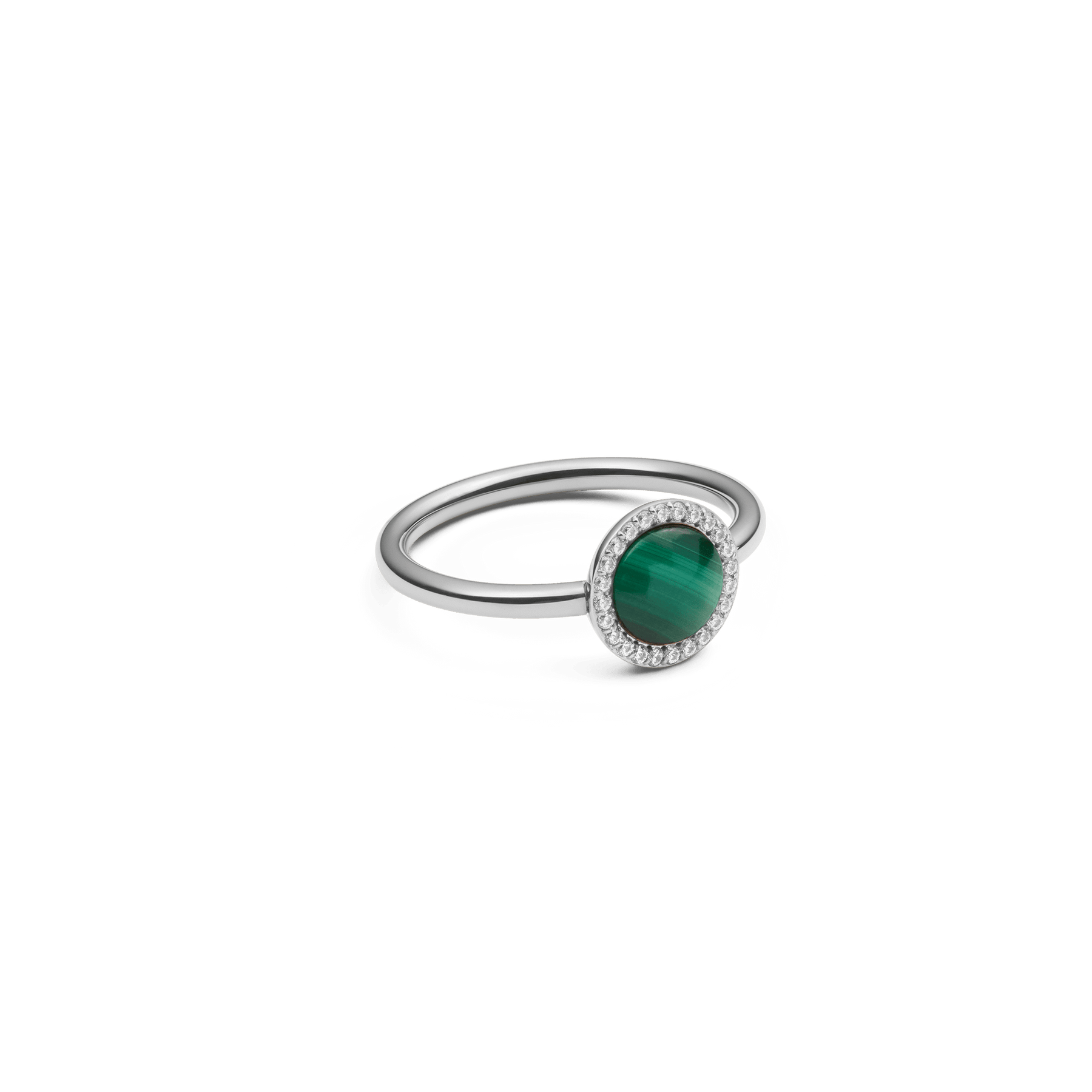 A thin row of white CZ crystals in a claw setting highlights the semi-precious stone in the Audrey Ring to make it stand out even further. The whole is translated into a domed shaped centerpiece ring that elevates your look to timelessly elegant. Semi-precious stones are a product of nature, and as such, variations in color, pattern, texture, and veining are inherent as each stone is unique.
