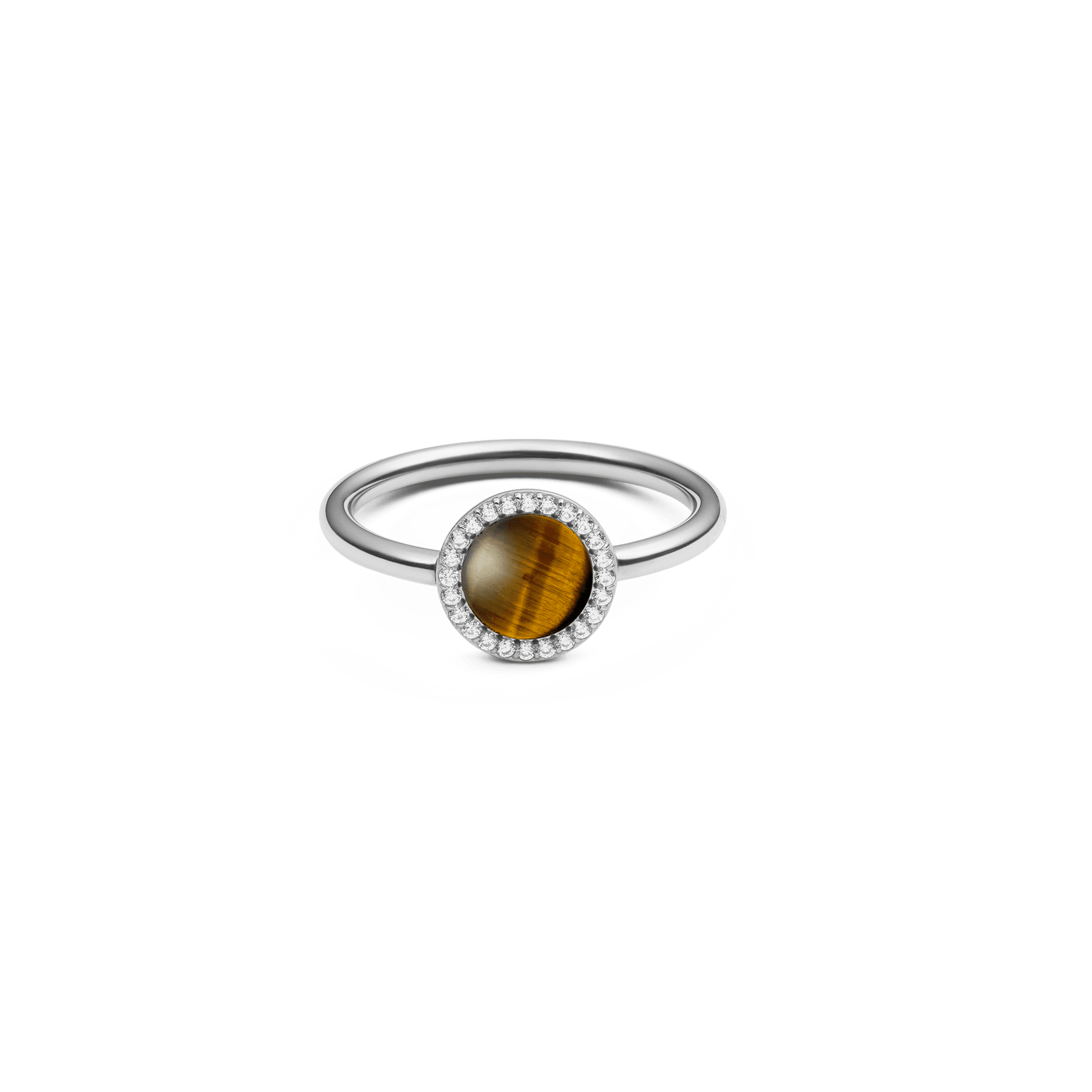 A thin row of white CZ crystals in a claw setting highlights the semi-precious stone in the Audrey Ring to make it stand out even further. The whole is translated into a domed shaped centerpiece ring that elevates your look to timelessly elegant. Semi-precious stones are a product of nature, and as such, variations in color, pattern, texture, and veining are inherent as each stone is unique.
