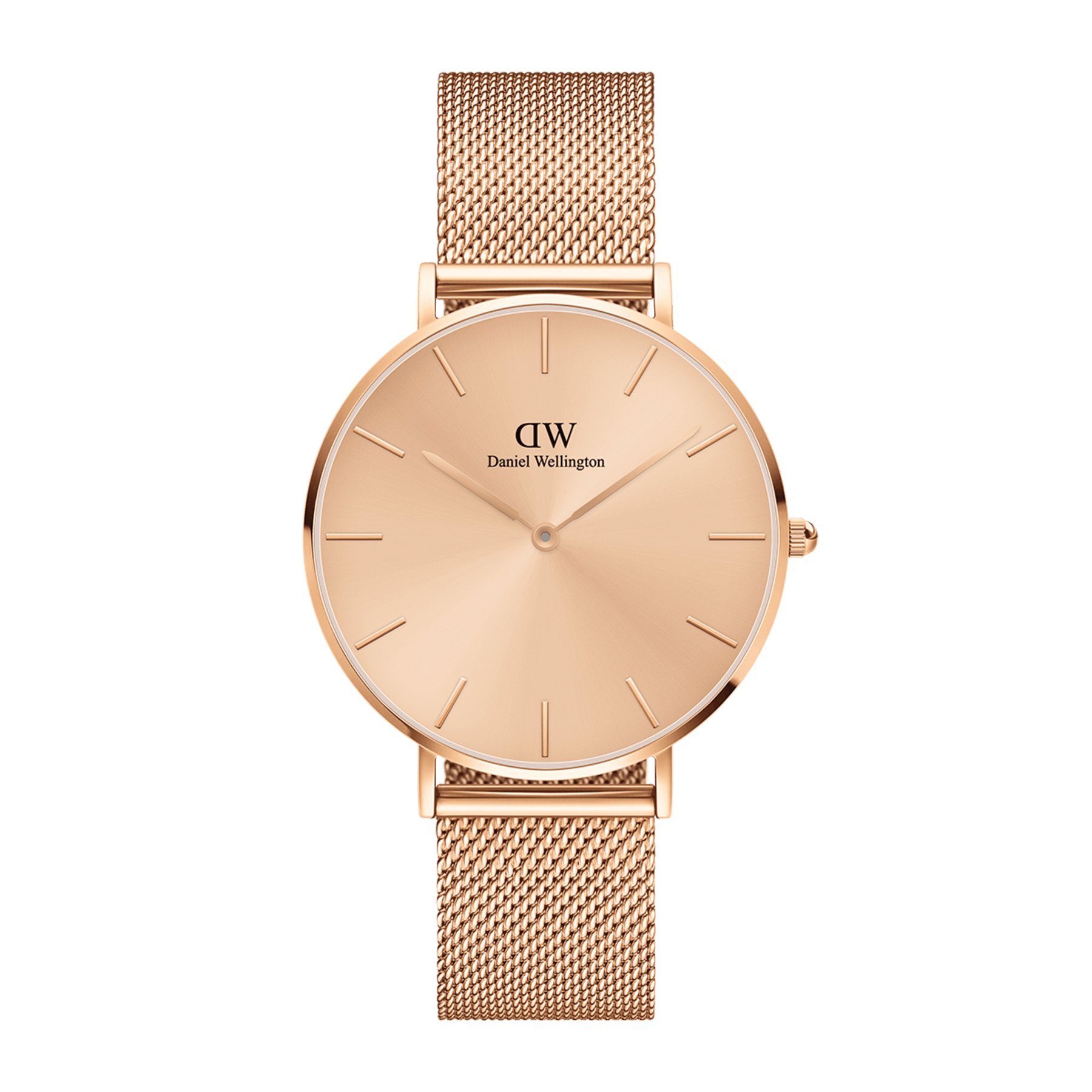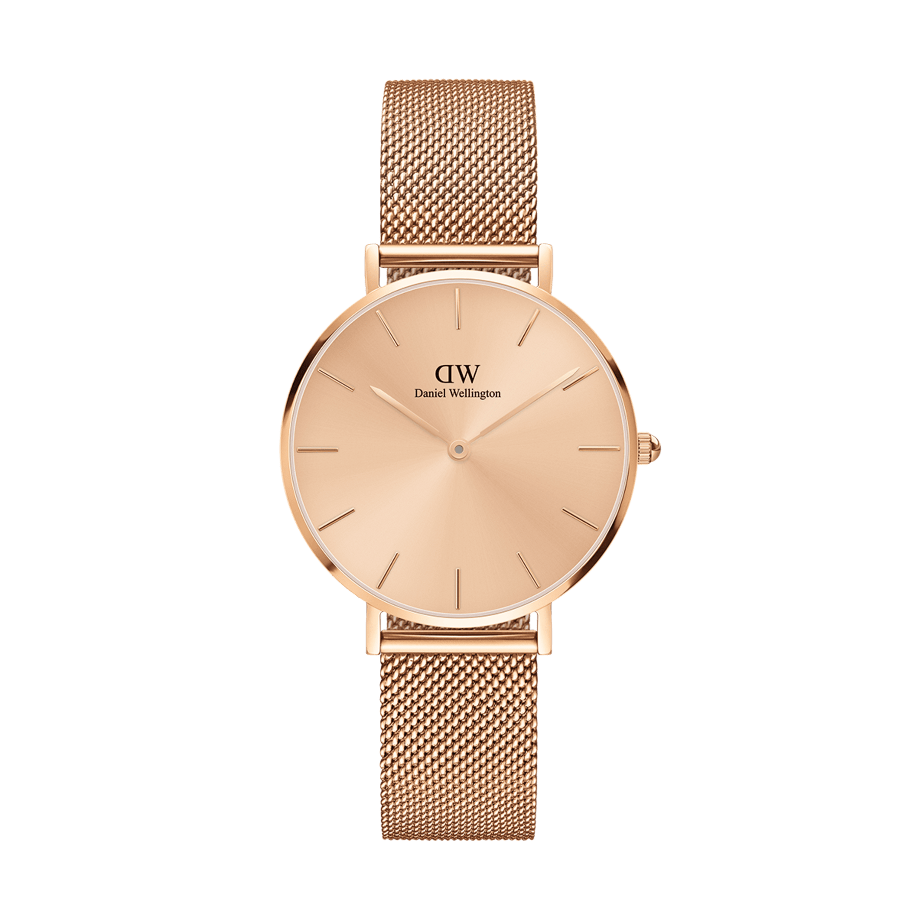 The Petite Unitone features a seamlessly matching rose gold mesh strap and watch dial. Crafted with polished stainless steel, designed to make a delicate yet eye-catching statement. A timepiece that sets the tone for any occasion.