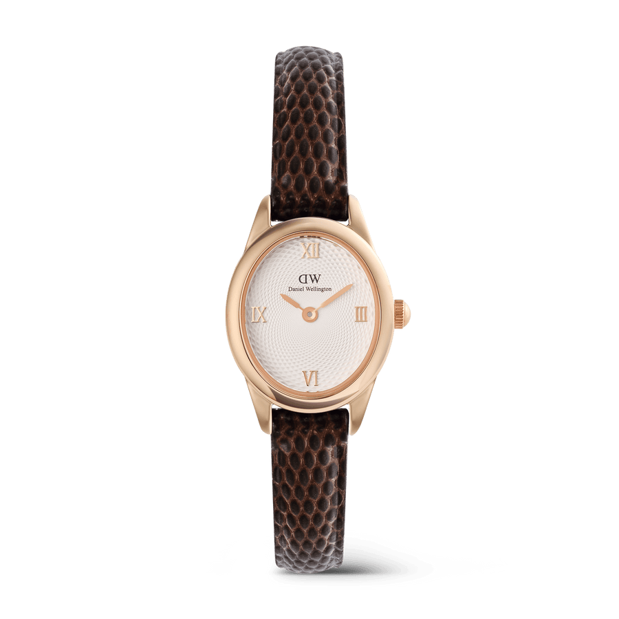 Ophelia Mini Dark Brown Lizard White Guilloché Rose Gold