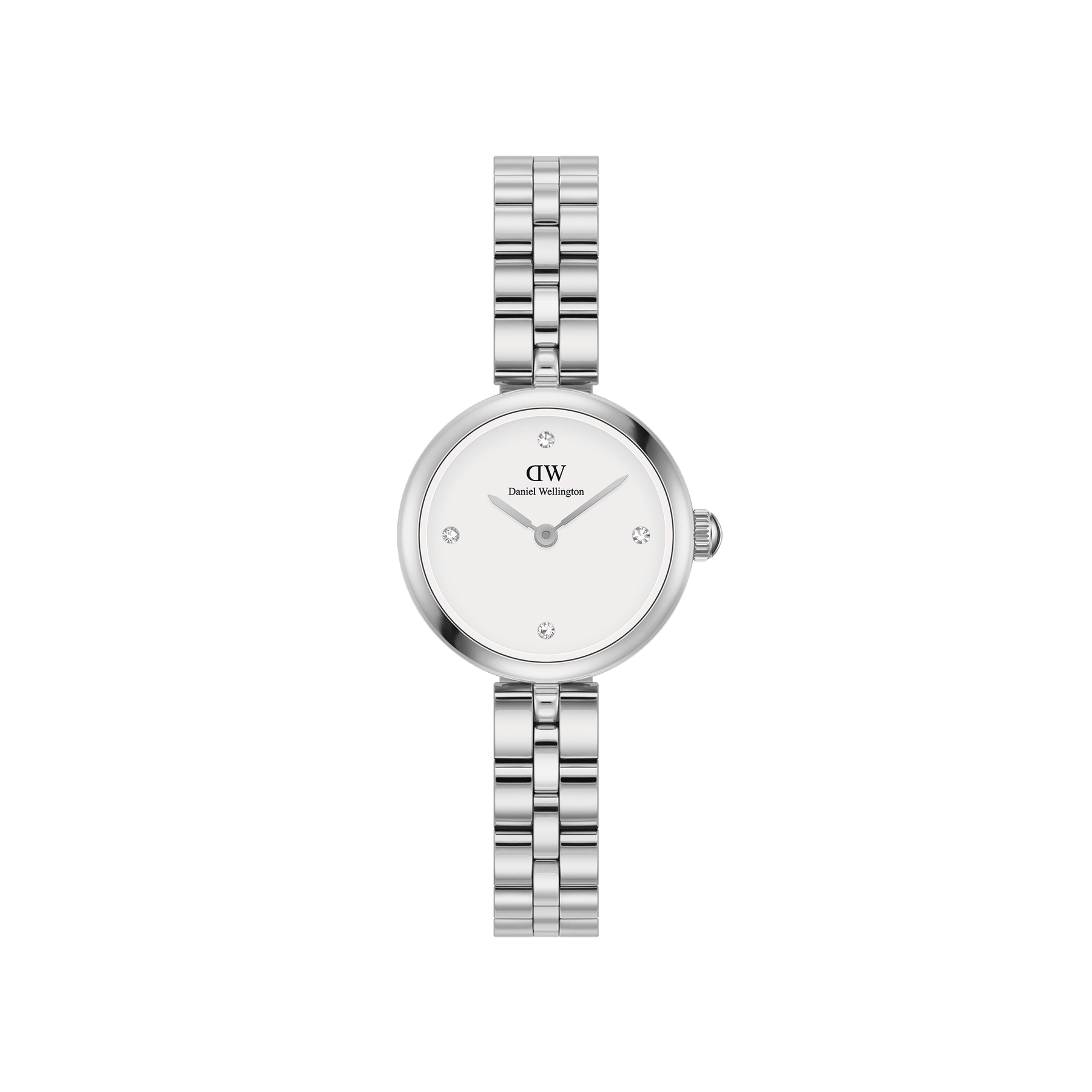 The first crossover between our jewelry and watch collections, Elan Lumine shares the same delicate silhouette and logo design details as its namesake pieces. Features a silver 3-link strap with crystals dotting the white dial.