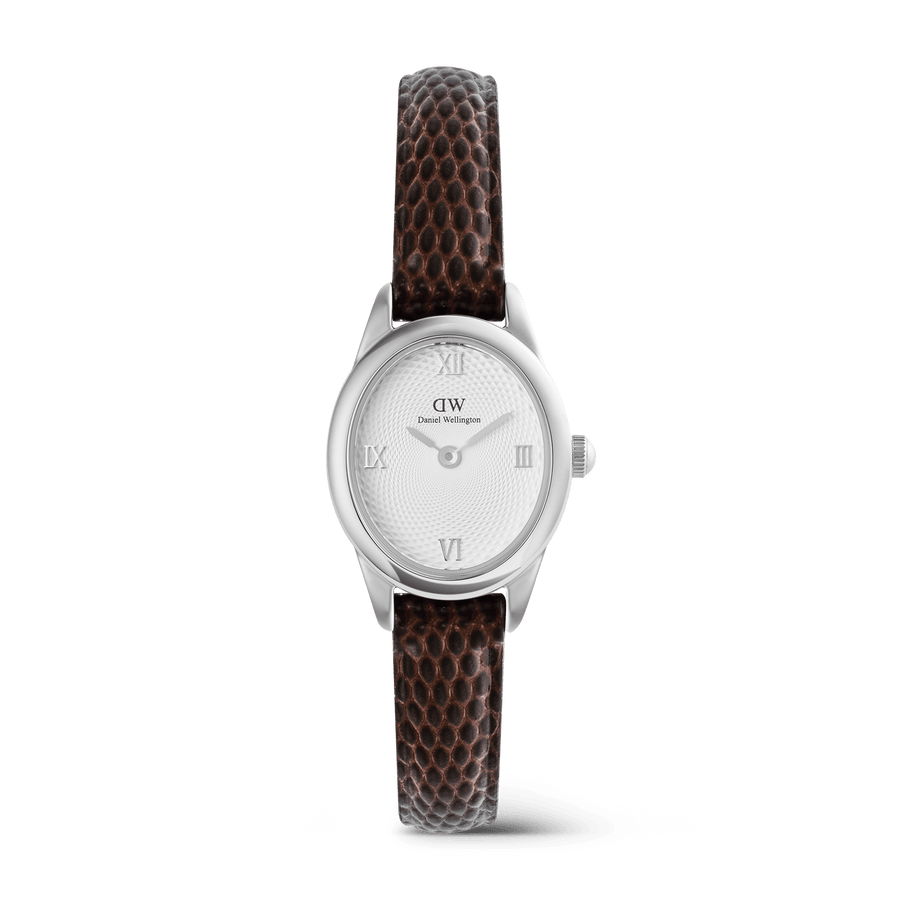 Ophelia Mini Dark Brown Lizard White Guilloché Silver