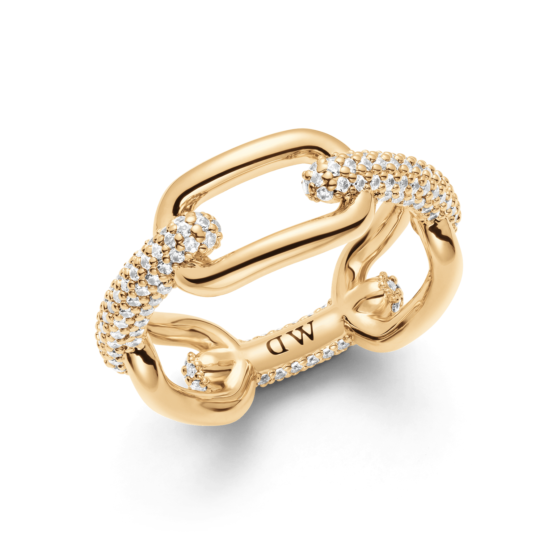 A mix of industrial elements and refined crystal details take this gold link ring way beyond your basic chain. Wear it with the rest of the Crystal Link collection or alone as a statement piece—this chunky ring is a stunner either way.