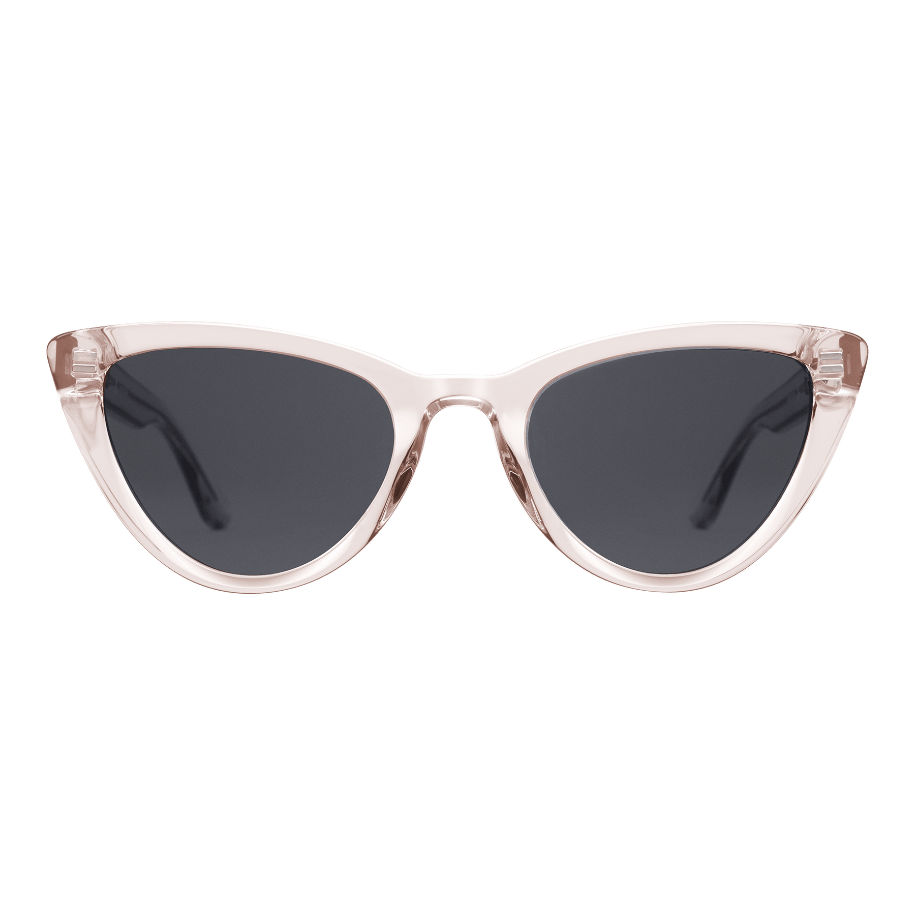 The Lynx sunglasses breathe an edgy femininity to any look. Crafted from bio-acetate, they feature clear pink frames and stylish black lenses. Cat eye sunglasses are both trendy and a retro classic. The Lynx collection protects your eyes from UVB and UVA rays during sunny days while still looking fierce.