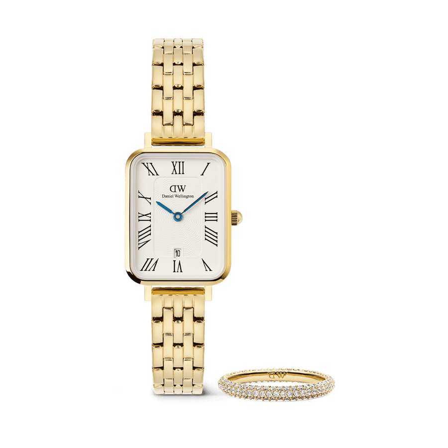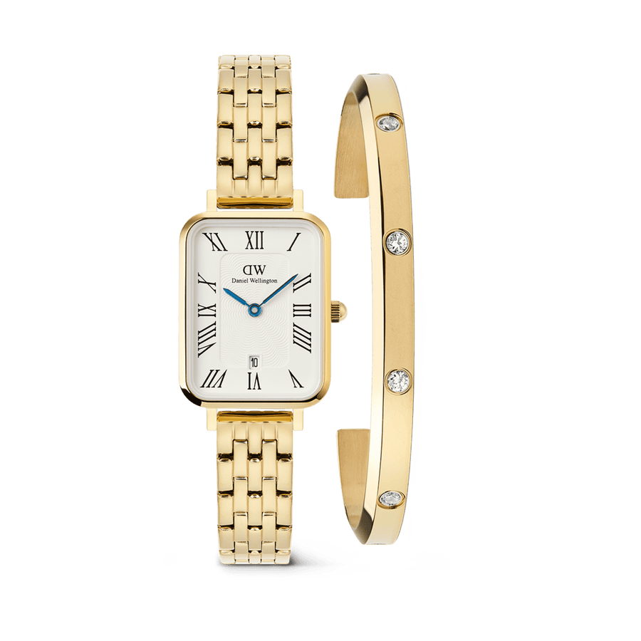 Quadro Roman Numerals Date + Classic Lumine Bracelet Gold Set