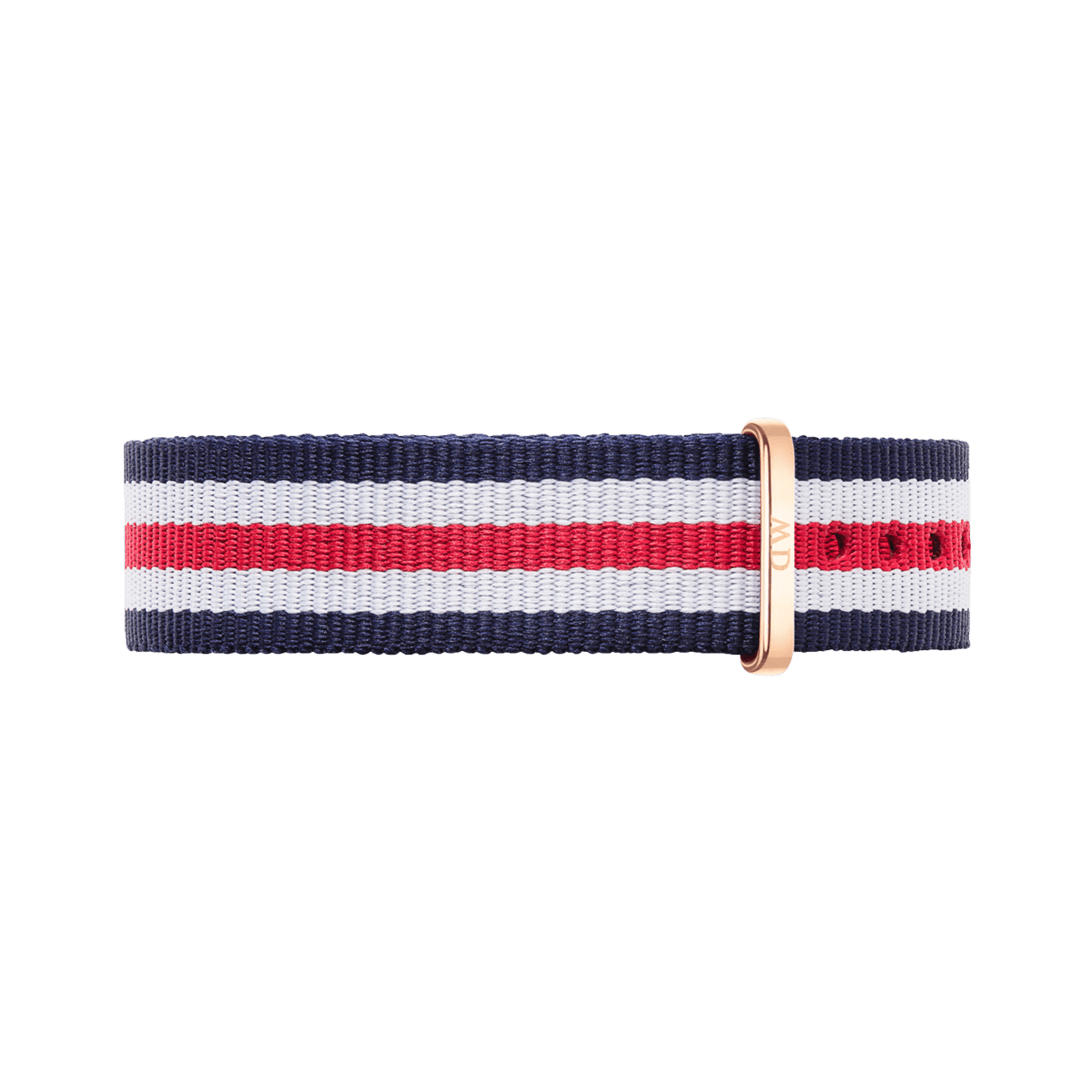 Inspired by the gorgeous colors of a classic flag, this red, white and blue NATO band celebrates timeless preppy American fashion. The playful band, when paired with the simplistic and elegantly slim dial, gives you a timepiece that can be worn to both work and after work.
